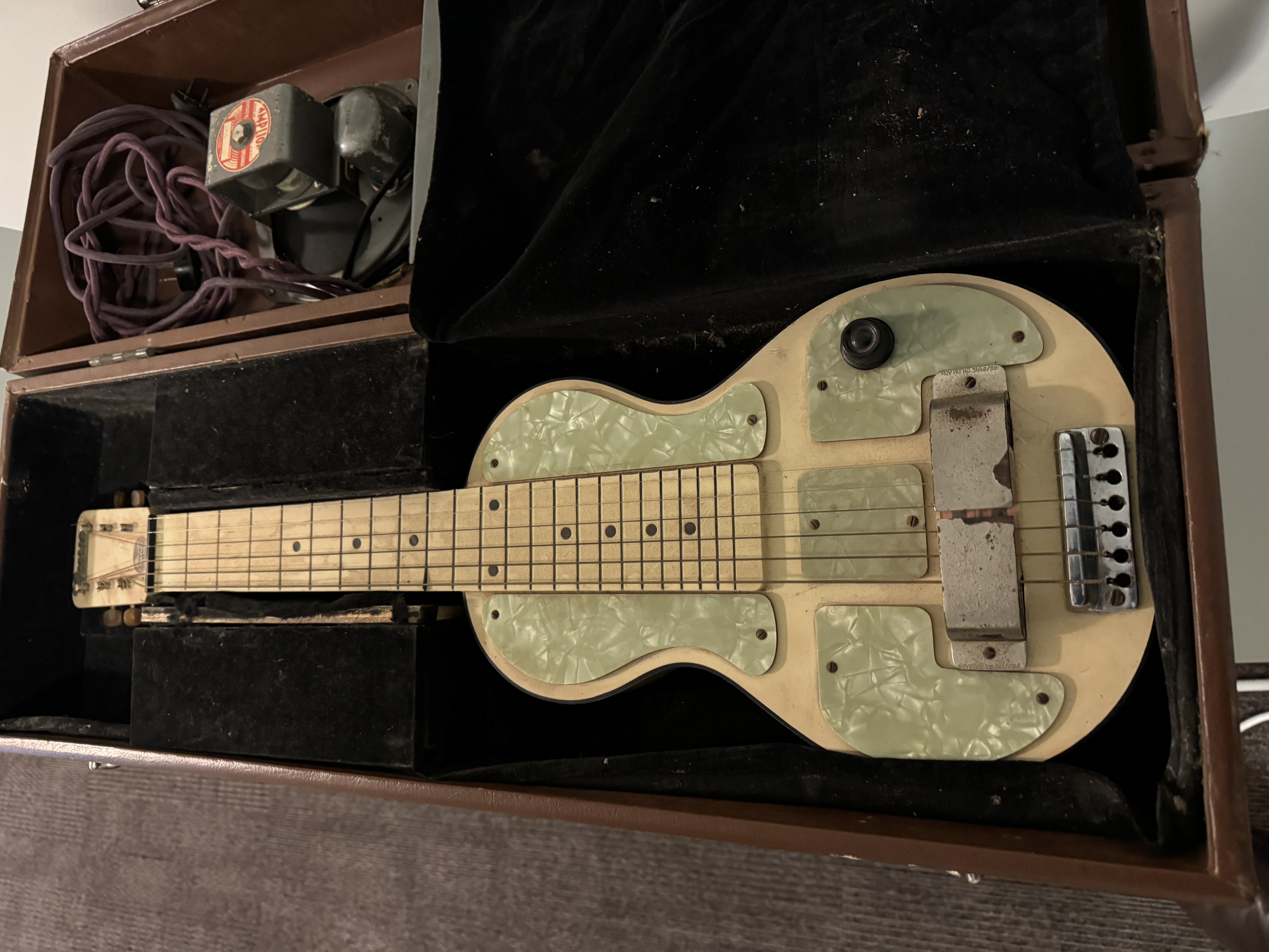 This little charmer is a real “combo”, amp and carry case for the slide guitar.