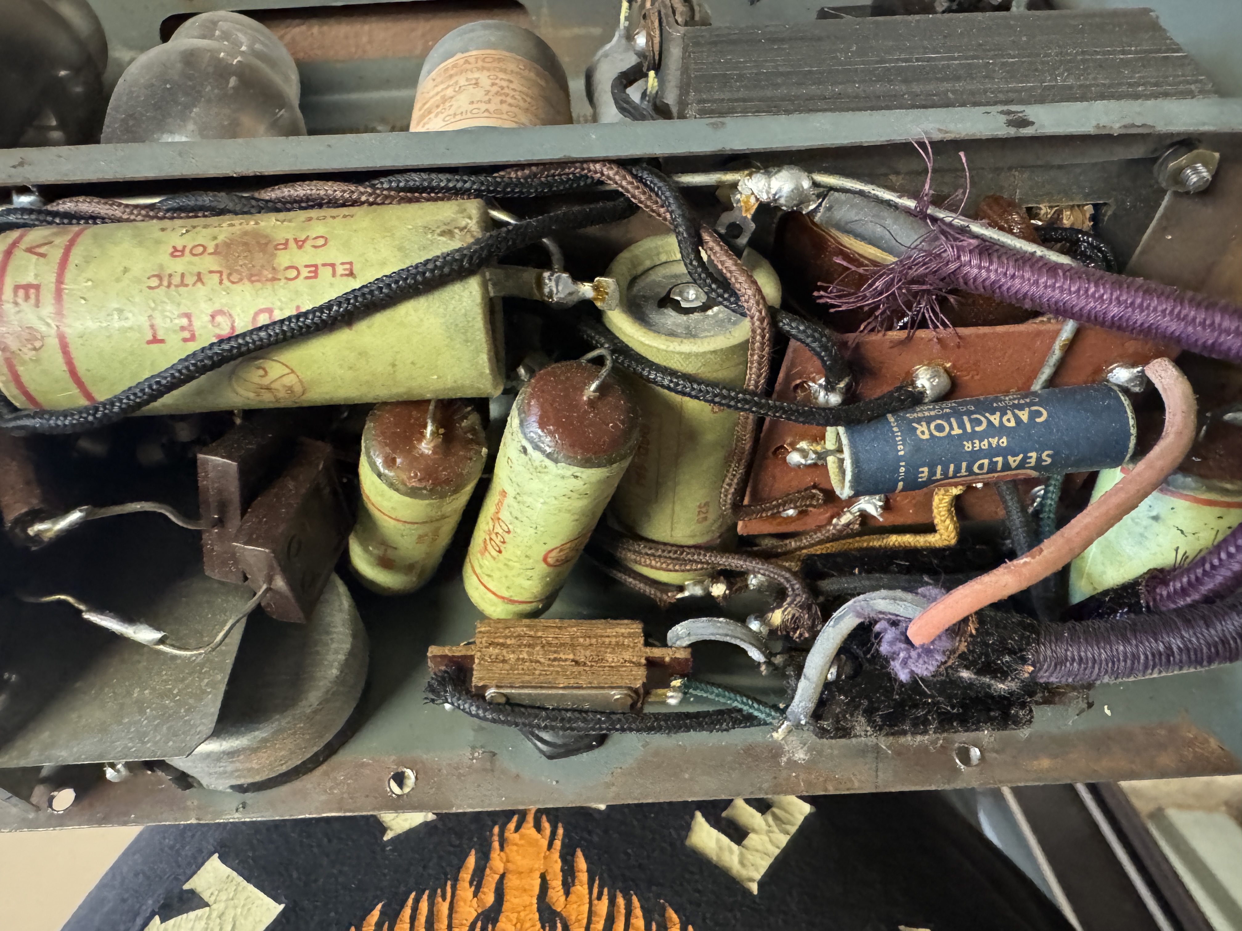 New caps and ready for many more years. Note overheating resistor on regulator socket (bot-L).